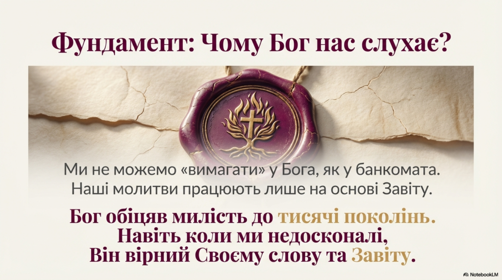 Ми не можемо «вимагати» у Бога, як у банкомата. Наші молитви працюють лише на основі Завіту.