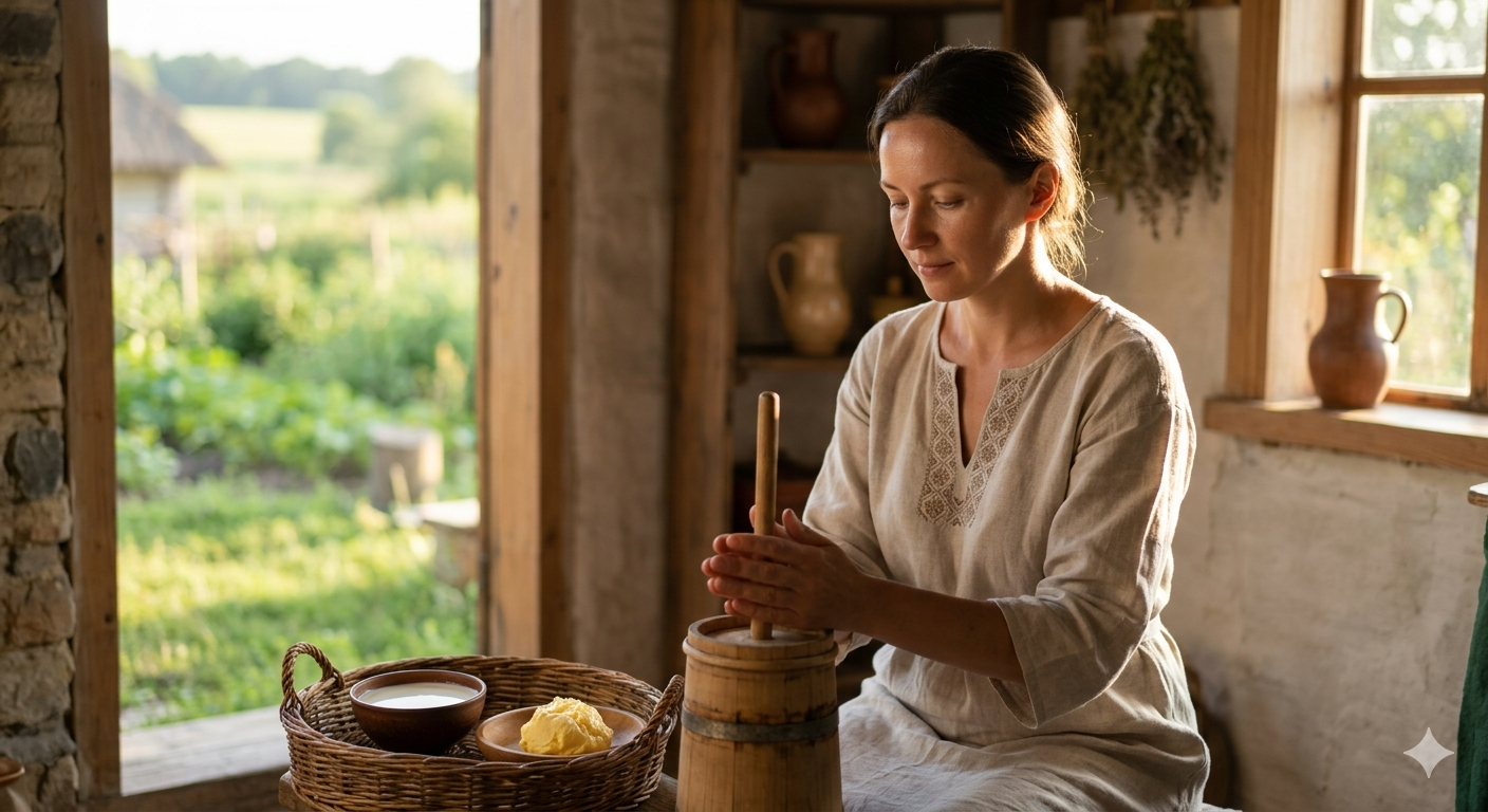 - 精神转变: 液态牛奶转化为固态且营养丰富的黄油,象征着灵性成熟的过程。使徒保罗曾写道,人要从“奶”(简单的教导)成长到“干粮”(深刻的理解)(哥林多前书 3:2,希伯来书 5:12-14)。搅打黄油需要付出努力。这意味着你要接受神赐予你的一切(恩典、才能、神的话语——“奶”),并通过你的努力、祷告、工作和人生的磨难(“搅打”的过程),将它们转化为更有价值、更持久、更有益的东西——“黄油”。.